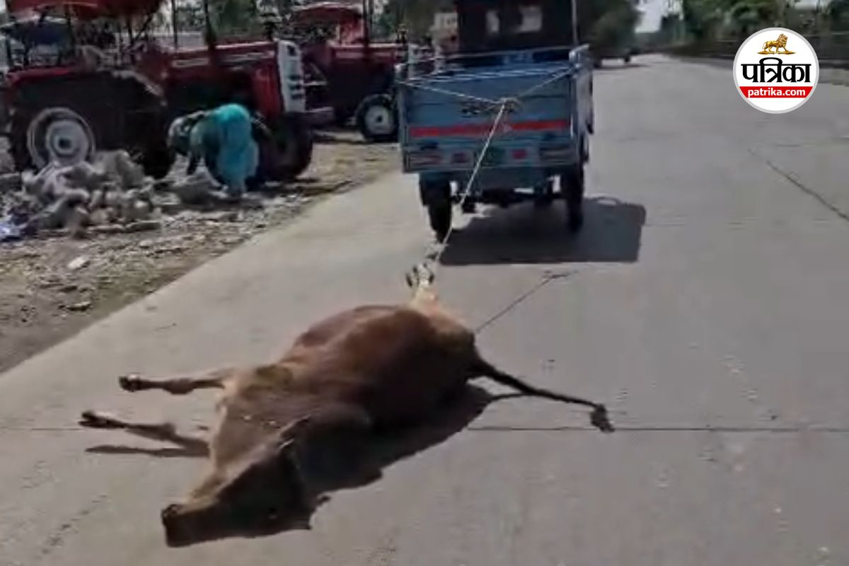 मृत गाय को ऑटो से घसीटने की तस्वीर (photo source- Patrika)