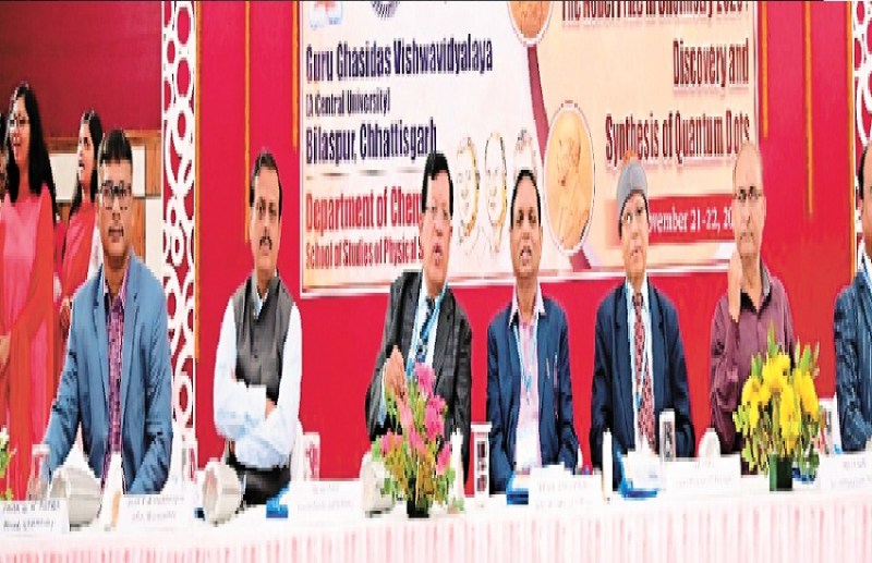 बिलासपुर। CG News: गुरु घासीदास विश्वविद्यालय में दि नोबल प्राइज इन केमेस्ट्री 2023- दि डिस्कवरी एंड सिंथेसिस ऑफ क्वांटम डॉट्स विषय पर राष्ट्रीय सिम्पोजियम का आयोजन किया गया, जिसका मुख्य उद्देश्य शिक्षकों, शोधार्थियों और छात्रों को क्वांटम डॉट्स के क्षेत्र में नए शोध की बारीकी को समझाना था।
