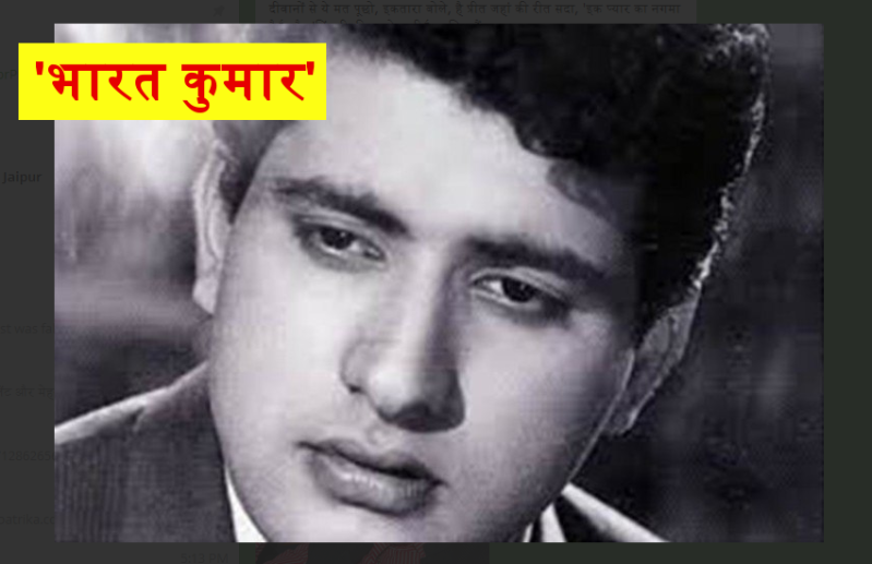 साठ और सत्तर के दशक को हिन्दी फिल्म संगीत ( Hindi Flim Music ) का सबसे सुनहरा दौर माना जाता है। उस दौर में जिन अभिनेताओं की फिल्में सिल्वर और गोल्डन जुबली मनाया करती थीं, उनमें मनोज कुमार ( Manoj Kumar ) शामिल हैं। एबटाबाद (अब पाकिस्तान) में 24 जुलाई, 1937 को जन्मे हरिकिशन गोस्वामी को दिलीप कुमार ( Dilip Kumar ) इतने पसंद थे कि उनकी 'शबनम' (1949) ( Dilip Kumar Movie Shabnam ) देखने के बाद उन्होंने अपना नाम बदल कर मनोज कुमार ( Manoj Kumar real name ) रख लिया। उस फिल्म में दिलीप कुमार का नाम मनोज था। कई फिल्मों में रोमांटिक भूमिकाएं निभाने के बाद बतौर निर्देशक अपनी पहली फिल्म 'उपकार' ( Upkar Movie ) से मनोज कुमार ने देशभक्ति फिल्मों की जो अलख जगाई, उन्हें 'भारत कुमार' ( Bharat Kumar ) कहा जाने लगा। मनोज कुमार अब 83 साल के हो चुके हैं और कई साल से फिल्मी चहल-पहल से दूर जिंदगी बसर कर रहे हैं।