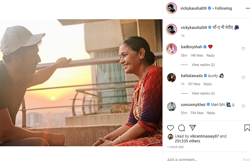 विक्की कौशल ने अपने इंस्टाग्राम अकाउंट से एक तस्वीर शेयर की है। इस तस्वीर में विक्की अपनी मां के साथ बालकनी में बैठे नजर आ रहे हैं। दोनों की ये खूबसूरत सी तस्वीर किसी के भी चेहरे पर मुस्कुराहट ला सकती है।