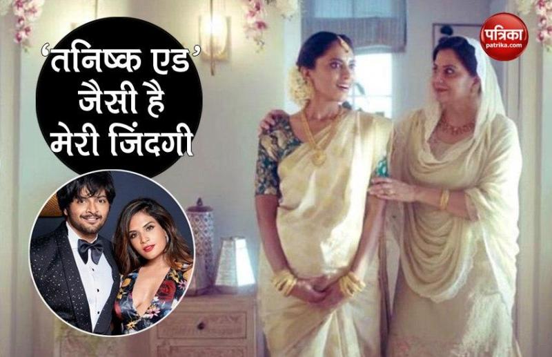 दरअसल, अभिनेत्री ऋचा चड्ढा ने अपने एक इंटरव्यू के दौरान अली फजल संग उनके रिश्ते को तनिष्क विज्ञापन संग तुलना करते हुए कहा कि "उनकी जिंदगी भी बिल्कुल तनिष्क एड की जैसी ही तो है। वह अली से बेहद प्यार करती हैं और उसके बदले में उन्हें अली के परिवार से भी बेहद प्यार मिलता है।" उन्होंने लोगों की घटिया मानसिकता पर तंज कसते हुए कहा कि "उन्हें उन लोगों के लिए बेहद ही दुख महसूस होता है जो दूसरों के शादी के फैसले से नाखुश होते हैं।"