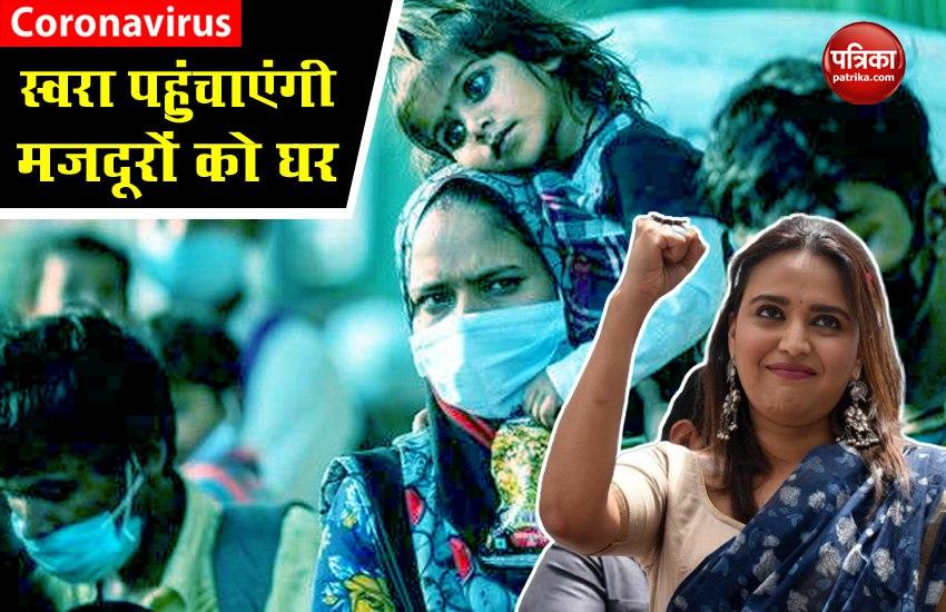 नई दिल्ली। कोरोनावायरस ( coronavirus ) की वजह से देशभर में लॉकडाउन जारी है। अचानक से हुए लॉकडाउन ( Loackdown ) का सबसे ज्यादा असर प्रवासी मजदूरों ( Migrant Workers ) पर लॉकडाउन का दिखाई देने लगा। परिवार से दूर दूसरे राज्यों में फंसे लोग बस यही चाहते थे कि वह कैसे ना कैसे अपने घर अपने परिवारवालों के पास पहुंच जाएं। अधिकतर लोगों ने पैदल ही हजारों किलोमीटर की दूरी तय की। इस बीच अभिनेता सोनू सूद ( Sonu Sood ) ने भी मुंबई में रह रहे यूपी और बिहार के मजदूरों ( Up-Bihar Migrant Workers ) को सरकार की अनुमति से लेकर उन्हें बस के द्वारा उन्हें उनके घर पहुंचाया। वहीं अब अभिनेत्री स्वरा भास्कर ( Swara Bhaskar ) ने प्रवासी मजदूरों की घर वापसी के लिए मदद का हाथ बढ़ाया है।
