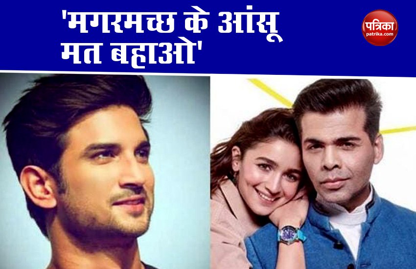 यूजर्स ने करण जौहर और आलिया भट्ट को मगरमच्छ के आंसू बहाने वाला बताते हुए निशाना साधा है। साथ ही करण जौहर के चैट शो 'कॉफी विद करण' (Koffee With Karan) को लेकर भी यूजर्स ने आलिया और करण को कटघरे में खड़ा किया है। वायरल हो रहे इस वीडियो में करण आलिया से सुशांत सिंह राजपूत को लेकर एक सवाल पूछते हैं। जिसपर आलिया कहती हैं कौन सुशांत? अब सुशांत के निधन के बाद जब आलिया ने उनकी तस्वीर शेयर की तो लोगों ने उन्हें आड़े हाथों लिया।