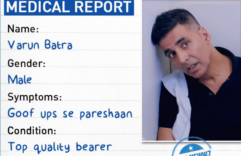 एक रिपोर्ट के अनुसार, अक्षय कुमार को अपनी अपकमिंग मूवी 'गुड न्यूज' का एक प्रमोशनल सॉन्ग शूट करना था। लेकिन उनको बुखार था। साथ ही उनके पीठ में चोट की वजह से दर्द भी था। दोनों शारीरिक समस्याओं के कारण ऐसा लग रहा था कि शूटिंग नहीं हो पाएगी। लेकिन अक्षय ने तय समय में ही गाना शूट करवा दिया।