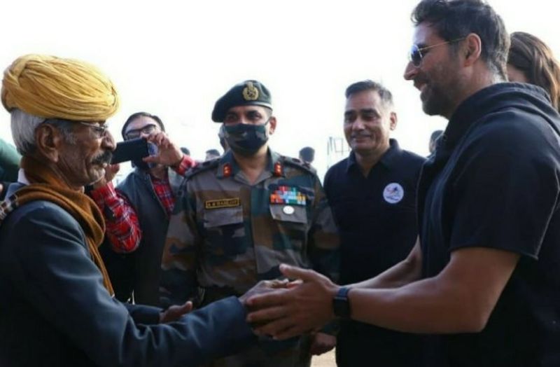जानकारी के अनुसार आर्मी डे के अवसर पर बॉलीवुड अभिनेता अक्षय कुमार, अभिनेत्री कृति सेनन जैसलमेर के आर्मी क्षेत्र में आयोजित एक कार्यक्रम में शामिल हुए। जहां अक्षय और कृति ने वहां उपस्थित सेना के अधिकारियों और जवानों से मिलकर चर्चा की। इसी मौके पर उपस्थित 1971 में भारत पाकिस्तान युद्ध के रियल हीरो भैरो सिंह से भी मुलाकात हुई। अक्षय कुमार ने भैरव सिंह का पहले हाथ जोड़कर स्वागत किया, फिर वे अपने आप को रोक नहीं पाए और उन्होंने उनके सामने झुक कर उनके पैर छुए और आशीर्वाद लिया। अभिनेता का इस प्रकार बीएसएफ जवान के प्रति आदर सम्मान देखकर हर कोई भावुक हो गया।