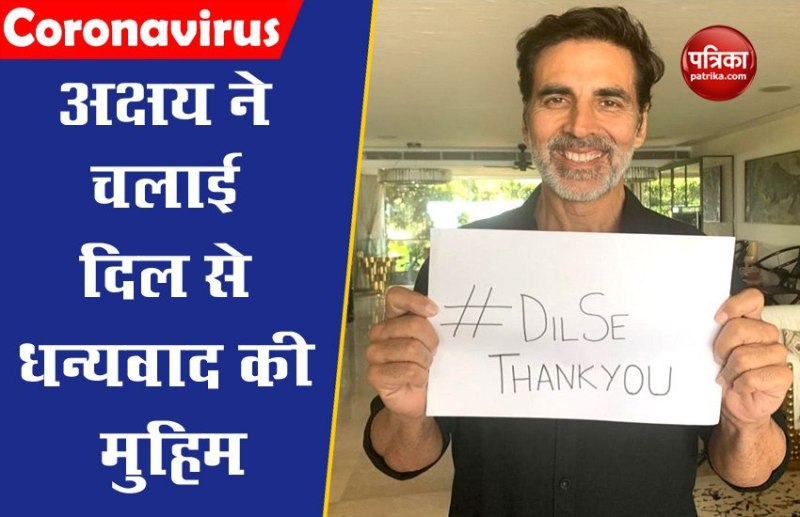 अक्षय ने कहा कि 'इन लोगों को एक थैंक्यू तो बनता है। मैं इन लोगों को दिल से धन्यवाद करूंगा। अगर आप चाहें तो आप भी ये कर सकते हैं।' अक्षय ने कहा एक हैशटैग दिल से थैंक्यू मुहिम चलाते हैं क्योंकि ये कम से कम है जो हम कर सकते हैं।