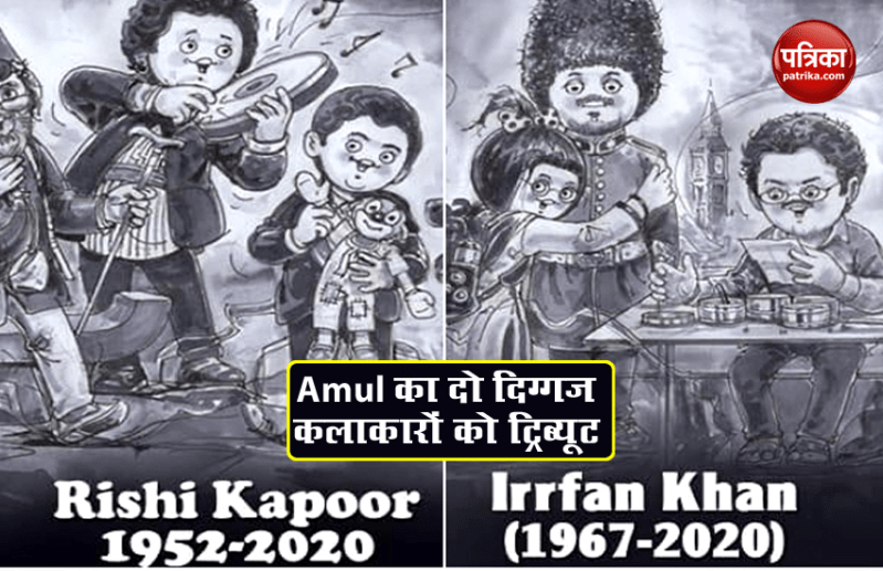 नई दिल्ली। कुछ पलों में ही बॉलीवुड के दो दिग्गज कलाकारों को खो देना एक सपने जैसा लगता है। अभिनेता ऋषि कपूर ( Rishi Kapoor ) और इरफान खान ( Irrfan Khan ) की अचानक से हुई मौत से सभी लोगों को तोड़ कर रखा दिया है। दोनों ही फिल्म इंडस्ट्री के चमकते सितारों में से एक थे। हिंदी फिल्म जगत में दोनों ने कई सुपरहिट फिल्में दी हैं। सोशल मीडिया पर उनके फैंस ने कई तरह से उन्हें श्रद्धांजलि दी। ऐसे में अब अमूल ( Amul ) कंपनी ने श्रद्धांजलि दी है।