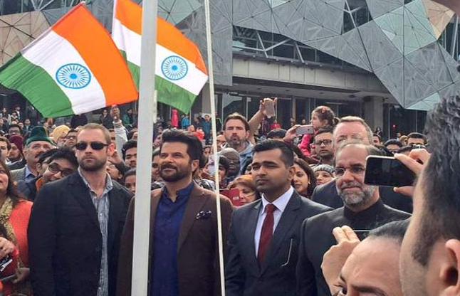 के मौके पर मेलबर्न में रहने वाले भारतीयों के बीच अनिल कपूर ने तिरंगा