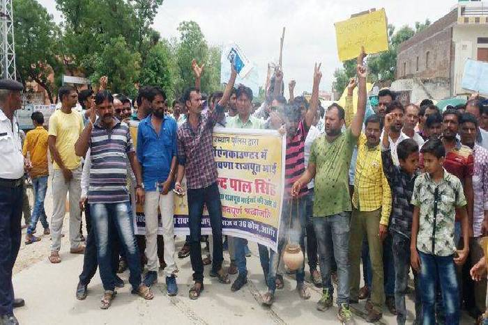 आहोर. आनंदपालसिंह एनकाउंटर प्रकरण को लेकर कस्बे में विभिन्न सामाजिक संगठनों के सदस्यों ने शनिवार को उपखंड अधिकारी कार्यालय के बाहर विरोध प्रदर्शन किया। उन्होंने एनकाउंटर की सीबीआई जांच करवाने समेत विभिन्न मांगों को लेकर राष्ट्रपति, प्रधानमंत्री, राज्यपाल व मुख्यमंत्री के नाम उपखंंड अधिकारी को ज्ञापन सौंपा तथा सरकार के खिलाफ नारेबाजी करते हुए मुख्यमंत्री का पुतला फूंका। जिला रावणा राजपूत महासभा, युवा महासभा, रावणा राजपूत समाज व राजपूत करणी सेना के बड़ी तादाद में सदस्य जुलूस के रूप में उपखंड अधिकारी कार्यालय पहुंचे तथा उपखंड अधिकारी प्रकाशचंद्र अग्रवाल को ज्ञापन सौंपा। इस दौरान उन्होंने आनंदपालसिंह के एनकाउंटर को लेकर राज्य सरकार के खिलाफ जमकर नारेबाजी की तथा मुख्यमंत्री राजे का पुतला फूंका। ज्ञापन मेें आनंदपालसिंह के एनकाउंटर की सीबीआई जांच करवाने, जांच में एनकाउंटर फर्जी साबित होने पर दोषियों के खिलाफ कड़ी कानूनी कार्रवाई करने, आनंदपालसिंह के परिजनों पर बढ़ते खतरे को ध्यान में रखते हुए उचित सुरक्षा प्रदान करने, आनंदपालसिंह के परिवारजनों पर दर्ज झूठे मुकदमों को वापस लिए जाने, आनंदपालसिंह के परिवारजनों की वाजिब मांगों को शीघ्र पूरा करने की मांग की गई। उन्होंने बताया कि आनंदपालसिंह के एनकाउंटर के तरीके को लेकर पूरे समाज में रोष है। इस मौके पर रावणा राजपूत समाज के तहसील अध्यक्ष हनुमानसिंह भाटी, युवा तहसील अध्यक्ष बिशनसिंह सोलंकी, श्रवणसिंह सिसोदिया, गजेन्द्रसिंह मांगलिया, मगसिंह राठौड़, राजपूत करणी सेना के चंदनसिंह देवड़ा, गजेन्द्रसिंह समेत बड़ी संख्या में रावणा राजपूत समाज के लोग मौजूद थे।