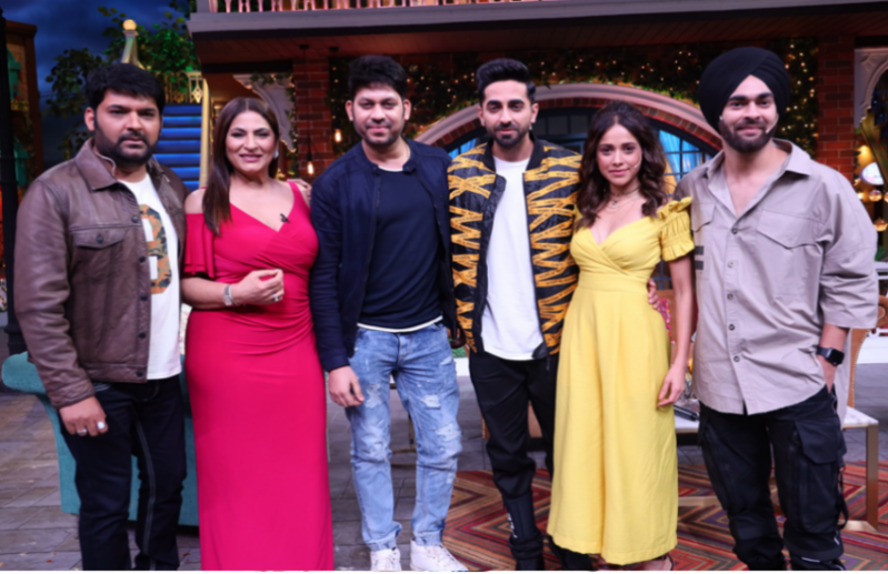 आयुष्मान खुराना इन दिनों अपनी आगामी फिल्म 'ड्रीम गर्ल' के प्रमोशन में व्यस्त चल रहे हैं। जल्द ही वे अभिनेत्री नुसरत भरूचा के साथ 'द कपिल शर्मा शो' में फिल्म का प्रमोशन करते नजर आएंगे। शो के दौरान सेट पर सभी मस्ती करते नजर आए। बता दें कि शो पर आने वाले मेहमानों से कपिल कई तरह के मजेदार प्रश्न पूछते हैं। कुछ प्रश्न उनकी पर्सनल लाइफ से भी जुड़े होते हैं। उन्होंने आयुष्मान से भी इस तरह के मजेदार सवाल किए।