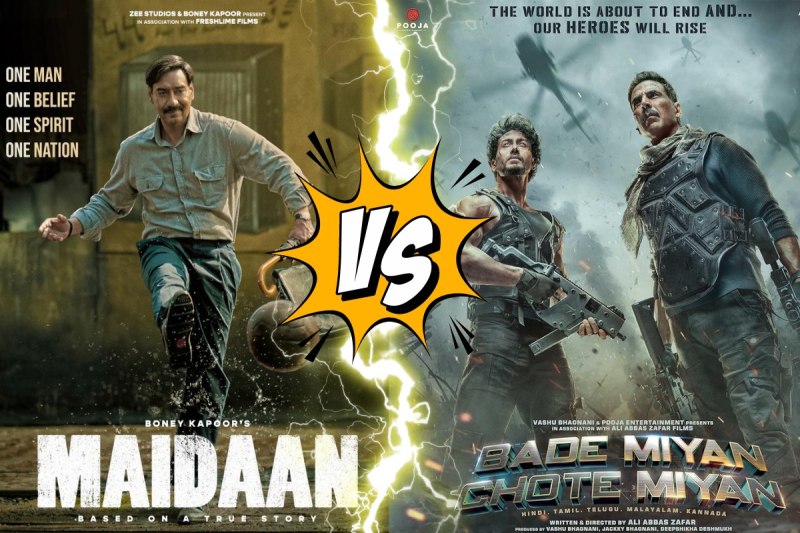 'बड़े मियां छोटे मियां' और 'मैदान' 11 अप्रैल को बड़े पर्दे पर रिलीज होने के लिए तैयार है। इस फिल्म के लिए मेकर्स ने प्री-बुकिंग पहले ही ओपन कर दी थी। इन दोनों फिल्मों से जुड़ा लोगों के मन में सवाल है कि इनमें से कौन-सी फिल्म थिएटर में देखी जाए। अगर आपके मन में भी ये सवाल है तो हम लेकर आ गए हैं आपके लिए दोनों फिल्मों से जुड़ी डिटेल।