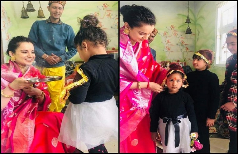 पूजा के दौरान कंगना ने कन्याओं को पूजा के साथ उनका भोजन भी कराया। इस मौके पर कंगना बेहद ही खूबसूरत रंग की पिंक साड़ी में दिखाई दी। इस साड़ी के साथ कंगना ने गोल्ड का नैकलेस भी पहना था। मिनिमल मेकअप के साथ कंगना बेहद ही खूबसूरत लग रही थी।