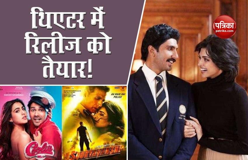 मार्च महीने से सिनेमाघर बंद थे। जिसके बाद से बॉलीवुड की कई बड़ी फिल्में रिलीज नहीं हो पाई हैं। कुछ निर्माताओं ने ओटीटी पर अपनी फिल्में रिलीज करने का फैसला लिया लेकिन कुछ ऐसी फिल्में भी हैं जो सिनेमा घर खुलने का इंतजार कर रही थीं। इसमें अक्षय कुमार, रणवीर सिंह से लेकर वरुण धवन की फिल्म शामिल है।
