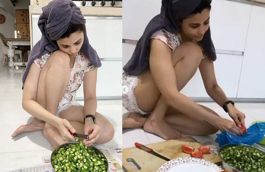 सलमान की ये एक्ट्रेस फर्श पर बैठकर घरेलू कपड़ों में काट रही भिंडी, वीडियो वायरल