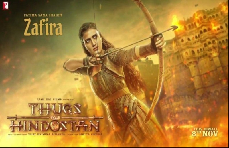 फातिमा एक बेतरीन एक्ट्रेस है ये बात वह अपनी पिछली फिल्म में 'दंगल' में साबित कर चुकी हैं। इस फिल्म में उनका अंदाज काफी अलग नजर आ रहा है। वह एक योद्धा की भेष-भूषा में हैं और उनके हाथों में तीर कमान है। पोस्टर के बैकग्राउंड में किला दिखाई दे रहा है और फातिमा के चारों तरफ अंगारें नजर आ रहे हैं। वहीं बीच में एक बाज उठता हुआ नजर आ रहा है। फातिमा के इस पोस्टर को आमिर ने अपने ट्विटर अकाउंट पर शेयर किया है। शेयर करते हुए उन्होंने लिखा, 'The warrior thug! Iskey nishane se bach ke raho!!!