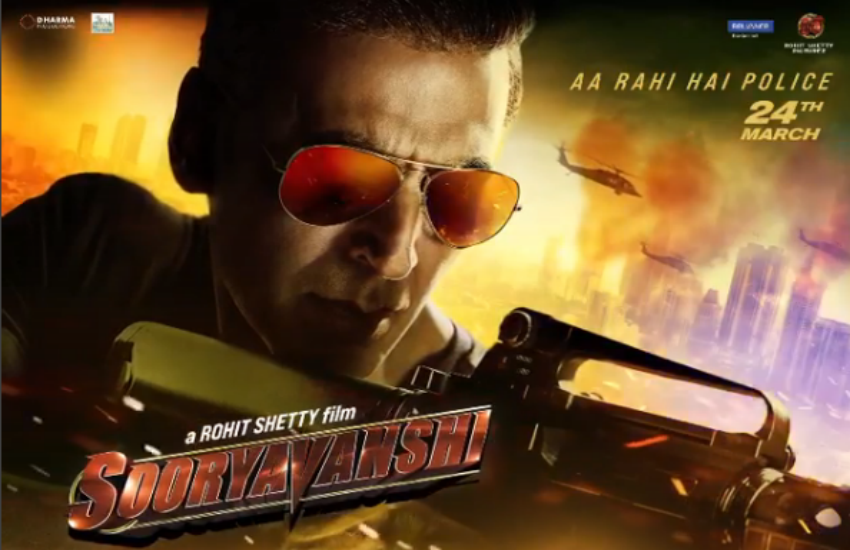 अक्षय कुमार ने कुछ देर पहले फिल्म 'सूर्यवंशी' ( Sooryavanshi ) का मोशन ट्रेलर शेयर किया है। इस ट्रेलर में अक्षय कुमार कॉप के किरदार में नज़र आ रहे हैं। पोस्टर में अक्षय कुमार के हाथ में गन और आंखो में चश्मे लगे है जिसमें वो काफी हैंडसम लग रहे हैं। पोस्टर को शेयर करते हुए अक्षय ने कैप्शन में लिखा है- क्या आप एक्शन से भरपूर कॉप के ड्रामा के लिए तैयार हैं? सूर्यवंशी का ट्रेलर कल लॉन्च होगा। पोस्टर की बात करे तो इसमें जो साउंड इस्तेमाल किया है वो काफी दमदार है। सिंघम 1 और सिंघम 2 की तरह इस का म्यूजिक भी लोगों की जुंबा पर चढ़ने को तैयार है। पोस्टर को अब तक 11 लाख से ज्यादा लोग देख चुके हैं।