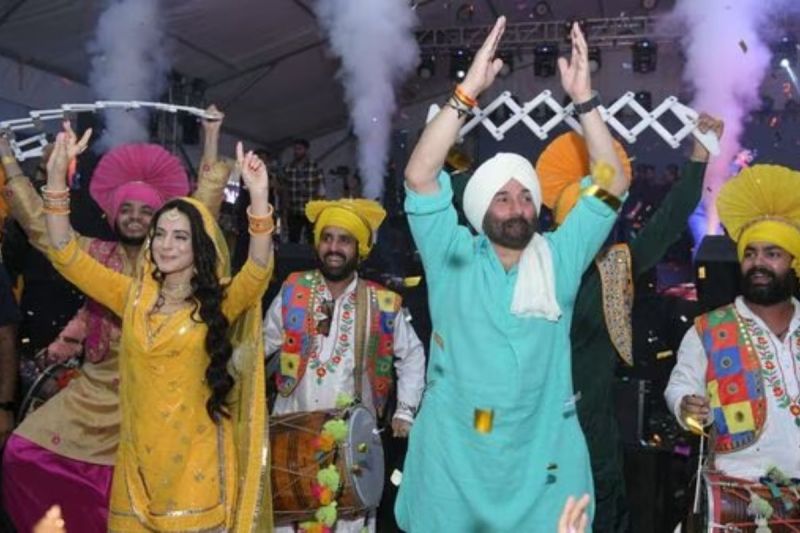 सनी देओल और अमीषा पटेल गदर 2 के प्रमोशन के दौरान।