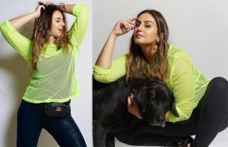 साक्षा की गई तस्वीरों में हुमा ने ब्लैक ट्राउजर और यलो जालीदार टॉप कैरी किया हुआ है। कुछ तस्वीरों में उनके साथ एक ब्लैक डॉगी भी है। हुमा ने कैप्शन में लिखा है कि 'बहुत खुश नहीं दिख रहे हैं, लेकिन फिर भी पोज दे रहे हैं'।