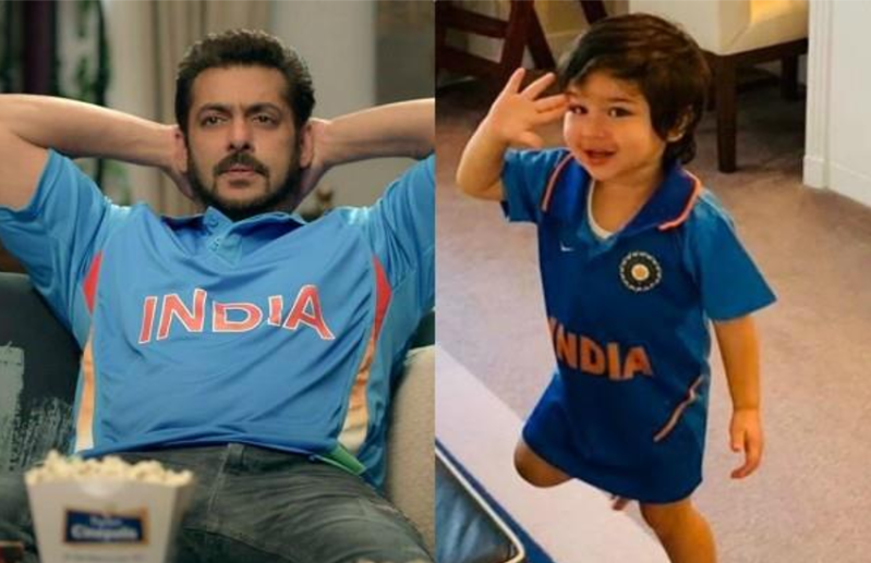 सैफ अली खान और करीना के लाड़ले तैमूर की एक तस्वीर सोशल मीडिया पर वायरल हो रही है। इस तस्वीर में वे टीम इंडिया की जर्सी पहने नजर आ रहे हैं। साथ ही सैल्यूट करते भी नजर आ रहे हैं।