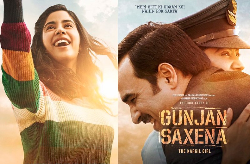 फिल्म के दो पोस्टर्स रिलीज किए गए हैं। पोस्टर्स में जाह्नवी कपूर को दो अलग-अलग लुक में देखा जा सकता है। पहले पोस्टर में पंकज त्रिपाठी का लुक नजर आया है। इस पोस्टर में जाह्नवी मल्टीकलर स्वेटर पहने और हाथ में कागज की प्लेन लिए दौड़ती नजर आ रही हैं। जबकि दूसरे पोस्टर में जाह्नवी एयरफोर्स पायलट की यूनिफॉर्म में अपने साथी अफसरों के बीच नजर आ रही हैं।