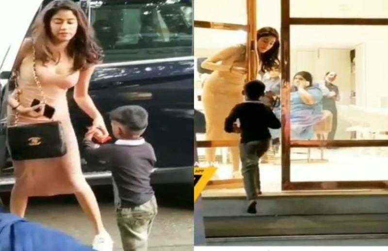 इस क्लिप में जाहन्वी एक छोटी बच्ची को अपनी कार के पास तक लाती है और वे एक बिस्किट का पैकेट इस बच्ची को दे देती हैं।जाह्नवी ओलिव ग्रीन शर्ट और डेनिम शॉर्ट्स में नजर आ रही हैं।