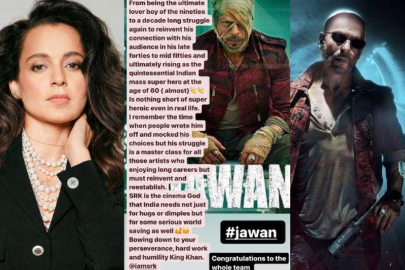 अपनी इंस्टाग्राम स्टोरीज पर कंगना ने शाहरुख की फिल्म 'जवान' का एक पोस्टर साझा किया और एक लंबा नोट लिखा।