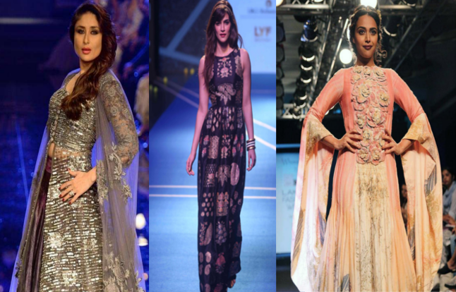 बुधवार 31 जनवरी से शुरू हुए पांच दिवसीय लैक्मे फैशन वीक का आयोजन मुंबई में किया जा रहा है। इस फैशन वीक में कई बॉलीवुड अभिनेत्रियां शो स्टॉपर के रूप में अपने ग्लैमर का जलवा बिखेरती नजर आएंगी। इनमें करीना से लेकर स्वरा भास्कर तक के नाम शामिल हैं।