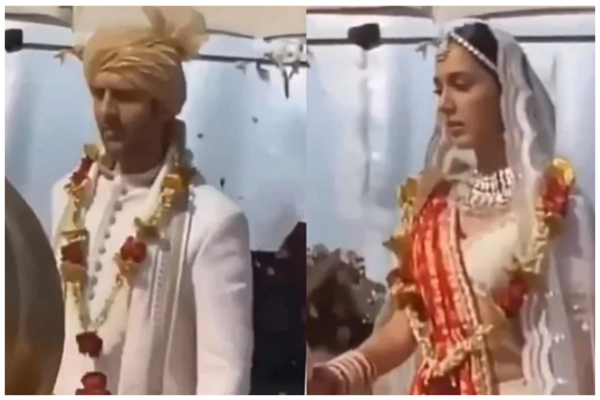 सोशल मीडिया पर इस वक्त एक वीडियो वायरल हो रहा है, जिसमें दोनों शादी करते नजर आ रहे हैं। इस वीडियो में आप देख सकते हैं कि कार्तिक और कियारा दोनों ने ही ऑफ व्हाइट शादी के कपड़े पहने हैं।