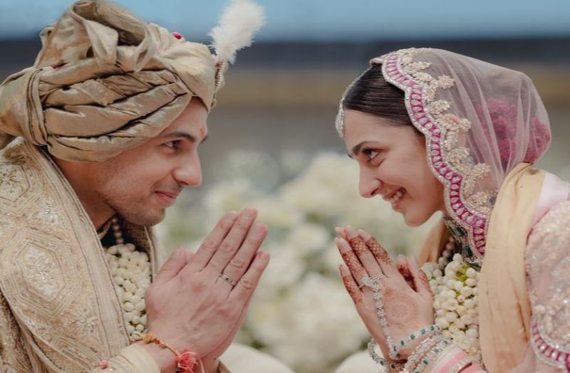 इस दौरान कियारा ने प्याजी रंग का बहुत ग्लैमरस लहंगा पहना है। इसपर उन्होंने हरे रंग की ज्वैलरी पहन रखी है जो बहुत जच रही है। वहीं सिद्धार्थ इस दौरान गोल्डन रंग की शाही शेरवानी में नजर आए। एक्ट्रेस ने शादी की तीन तस्वीरें अपलोड की है। एक्ट्रेस ने फोटो के कैप्शन में लिखा,'अब हमारी पर्मानेन्ट बुकिंग हो गई है। आप सभी का प्यार और आशीर्वाद चाहिए।'