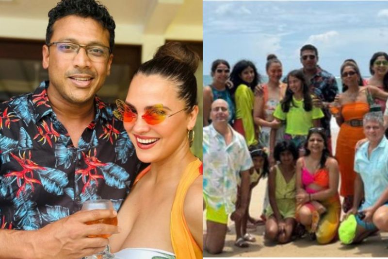 उन्होंने काफी कम मेकअप किया हुआ है और अपने बालों का बन बनाया हुआ है। उन्होंने अपने लुक को फंकी ऑरेंज सनग्लास और गोल्ड हूप इयररिंग्स से पूरा किया। वहीं महेश ब्लैक और ब्लू प्रिंटेड शर्ट में नजर आए। फोटो में दोनों काफी क्लोज खड़े हैं और पोज दे रहे हैं। बाकी दो फोटो में दोनों अपने साथियों के साथ पोज देते हुए दिखाई दे रहे हैं।