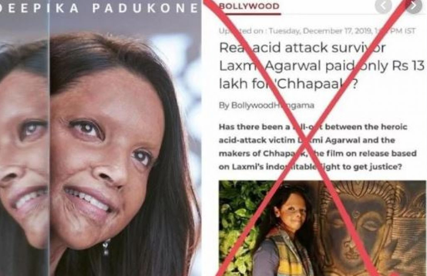 बॉलीवुड अभिनेत्री दीपिका पादुकोण Deepika Padukone इन दिनों अपनी फिल्म 'छपाक' Chhapaak के प्रमोशन में बिजी हैं। यह फिल्म एसिड अटैक सर्वाइवर लक्ष्मी अग्रवाल Lakshmi Agarwal की जीवन पर बेस्ड हैं। पिछले दिनों खबर आई थी कि लक्ष्मी अग्रवाल को उनके जीवन पर 'छपाक' बनाने के लिए 13 लाख रुपए दिए गए हैं। अब इन खबरों पर लक्ष्मी की प्रतिक्रिया सामने आई है। लक्ष्मी ने कहा कि यह सभी खबरें गलत और निराधार हैं। उन्होंने अपने इंस्टाग्राम अकाउंट पर कुछ खबरों का स्क्रीनशॉट शेयर कर लिखा,'असली एसिड अटैक सर्वाइवर लक्ष्मी अग्रवाल को छपाक के लिए मिले महज 13 लाख?'