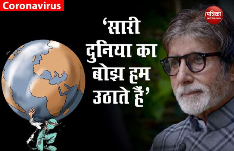 अमिताभ बच्चन की तस्वीर में आप देख सकते हैं कि पृथ्वी के बोझ को अपने कंधों पर डॉक्टर किस तरह लिए बैठा है। इस तस्वीर के माध्यम से अमिताभ जनता को डॉक्टर के दर्द से परिचित करवाना चाहते हैं। वे ये भी बताना चाहते हैं कि पृथ्वी पर इस महामारी का बोझ सबसे ज्यादा डॉक्टर्स पर ही है। इस मुश्किल दौर में हमें उनका सम्मान करना चाहिए। आज दुनियाभर में कोरोनावायरस से कई लोगों की जान जा चुकी हैं। डॉक्टर्स अपनी जान की परवाह ना करके पीड़ितो को बचाने में जुटे हुए हैं। इस तस्वीर में अमिताभ बच्चन ने कैप्शन में लिखा है- “सारी दुनिया का बोझ हम उठाते हैं।” उन्होंने ये भी बताया कि ये गाना उनकी फिल्म ‘कूली’ ( Coolie ) का है।