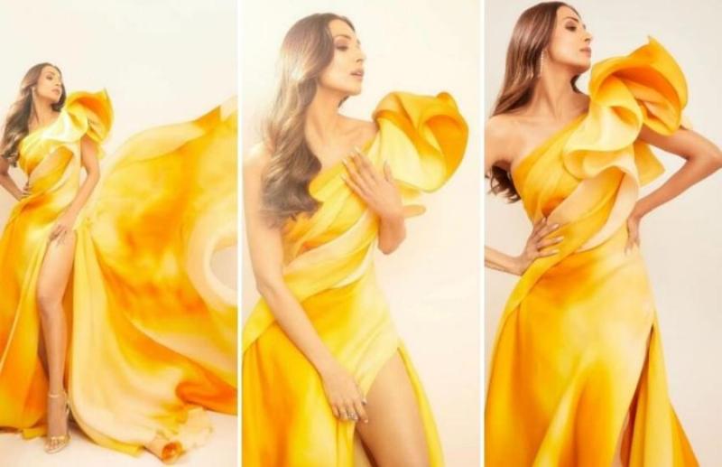 इस लुक की बात करें तो उनकी हाई स्लिट ड्रेस व्हाइट और येलो के स्लिक कपड़े की थी। गाउन बेहद ही सिंपल लेकिन बहुत स्टाइल से डिजाइन किया गया है। वन साइड फूल का डिजाइन इस ड्रेस को बेहद ही खूबसूरत बनाता है। मलाइका ने इस आउटफिट के साथ लाइट मेकअप लेकिन आंखों पर ज्यादा ध्यान दिया है। बालों को खुला रख कर मलाइका ने अपने लुक को कम्पलीट किया है। उन्होंने अपने इस लुक की तस्वीरों को अपने इंस्टाग्राम पर भी शेयर किया है।