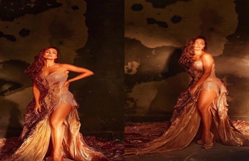 मलाइका अरोड़ा अपने लेटेस्ट फोटोशूट में गोल्डन थाई स्लिट गाउन पहने हुए दिखाई दे रही हैं। उन्होंने फ्री हेयर्स और हाई हील्स में अपने लुक को कंप्लीट करती हुईं दिखाई दे रही हैं।