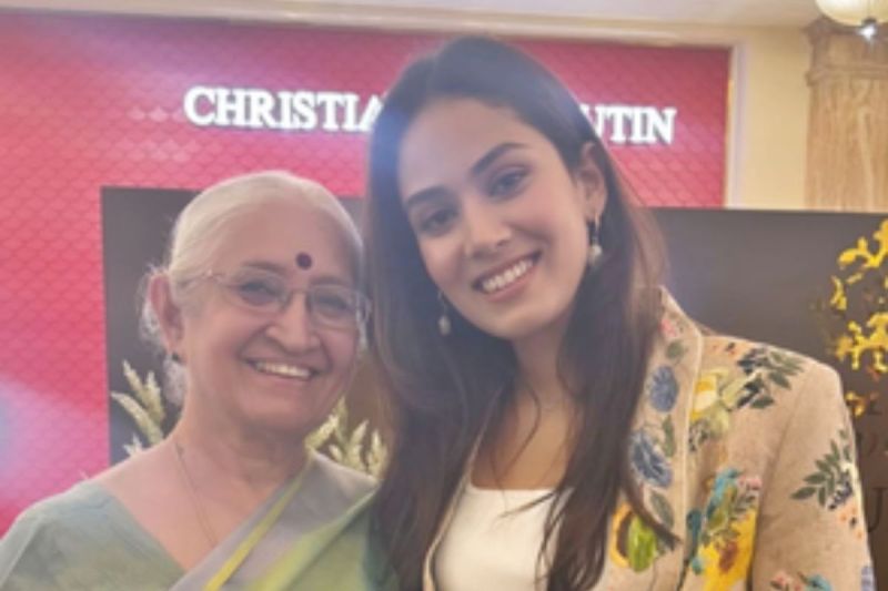तस्वीर में मीरा को एक सफेद टॉप पहने हुए देख सकते हैं, जिसको फ्लोरल कोट और मैचिंग ट्राउजर के साथ पेयर किया है। वह अपनी प्रोफेसर के करीब खड़ी हैं और फोटो के साथ स्माइल कर रही हैं।