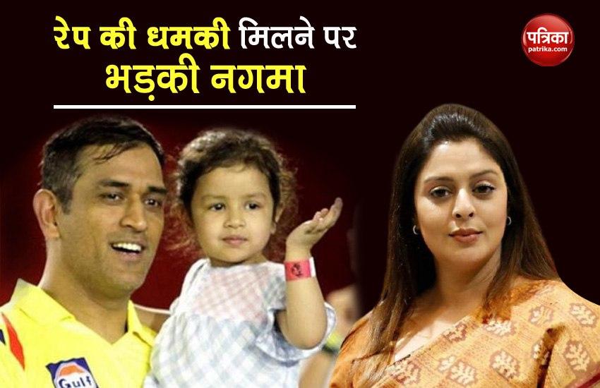 महज 5 साल की धोनी की बेटी संग रेप की बात सुन बॉलीवुड एक्ट्रेस नगमा खुद को रोक नहीं पाईं और उन्होंने ट्वीट कर अपना गुस्सा जाहिर किया। उन्होंने ट्वीट में लिखते हुए कहा कि एक एक राष्ट्र के तौर पर हम कहां खड़ें हैं। यह एक बेहद ही शर्मनाक खबर है कि केकेआर से चेन्नई सुपरकिंग्स के हार जाने के बाद धोनी की बेटी को रेप की धमकियां मिल रही हैं। इस ट्वीट में नगमा ने प्रधानमंत्री नरेन्द्र मोदी से भी सवाल पूछते हुए कि मिस्टर प्राइम मिनिस्टर हमारे देश में आखिर ये सब हो क्या रहा है? पोस्ट के अंत में नगमा ने बेटी बचाओ-बेटी पढ़ाओं का स्लोग भी हैशटैग में लिखा है।