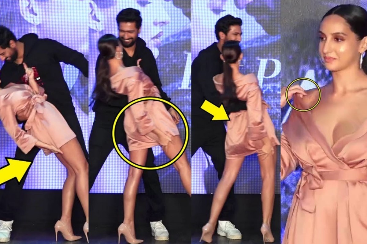 नोरा और विक्की का यह डान्स वीडियो सोशल मीडिया पर ख़ूब धमाल मचाया था। वीडियो में आप देख सकते हैं नोरा स्टेज पर विक्की के हाथ थामे डान्स कर रही हैं। डान्स के दौरान नोरा हल्का छुकती है तो आपकी ड्रेस को लेकर वह असहज महसूस करती हैं। वो बार बार अपने ड्रेस को ठीक करती हुई दिख रही हैं। नोरा का ड्रेस ठीक करते हुए एक्शन कैमरे में क़ैद हो गया।
