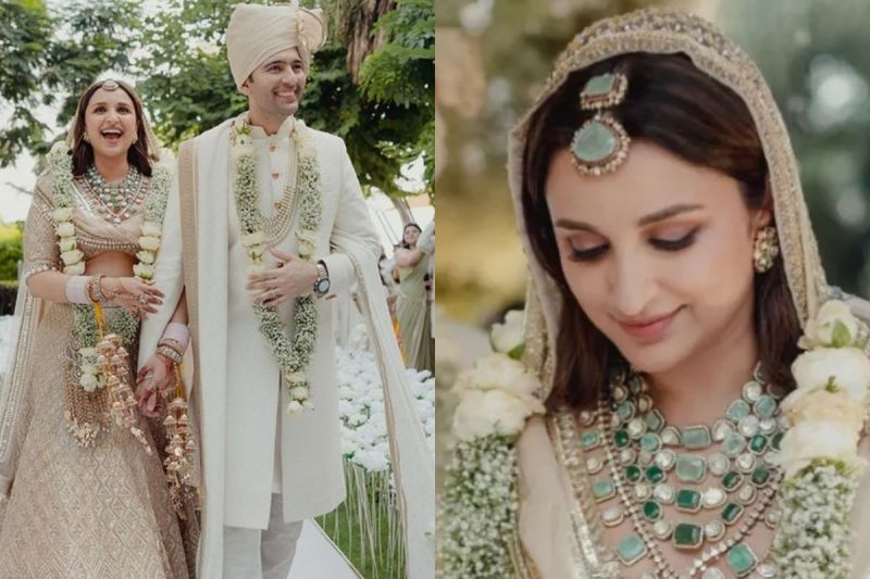परिणीति ने अपनी शादी के एक दिन बाद सोमवार को इंस्टाग्राम पर अपनी जयमाल और फेरे की कई तस्वीरें पोस्ट कीं। उनके 'घूंघट' की एक तस्वीर पर 'राघव' लिखा हुआ दिख रहा है।