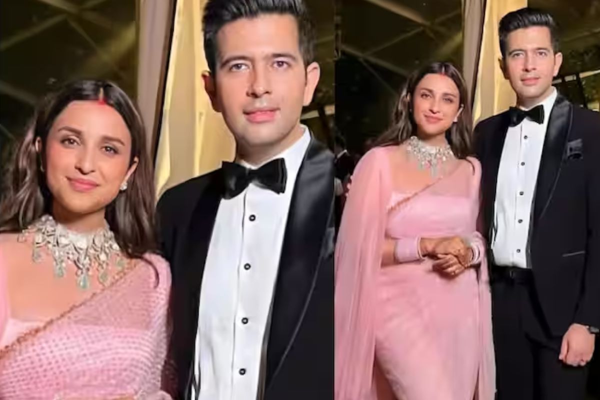 मिस्टर और मिसेज चड्ढा इस तस्वीर में बेहद खूबसूरत नज़र आ रहे हैं। मांग में सिंदूर, हाथों में चूड़ी और पिंक साड़ी में परिणीति नई नवेली दुल्हन की तरह खूब जंच रही हैं राघव भी पत्नी परिणीति से कम नहीं लग रहे, वह भी ब्लैक सूट में डैशिंग लग रहे हैं।