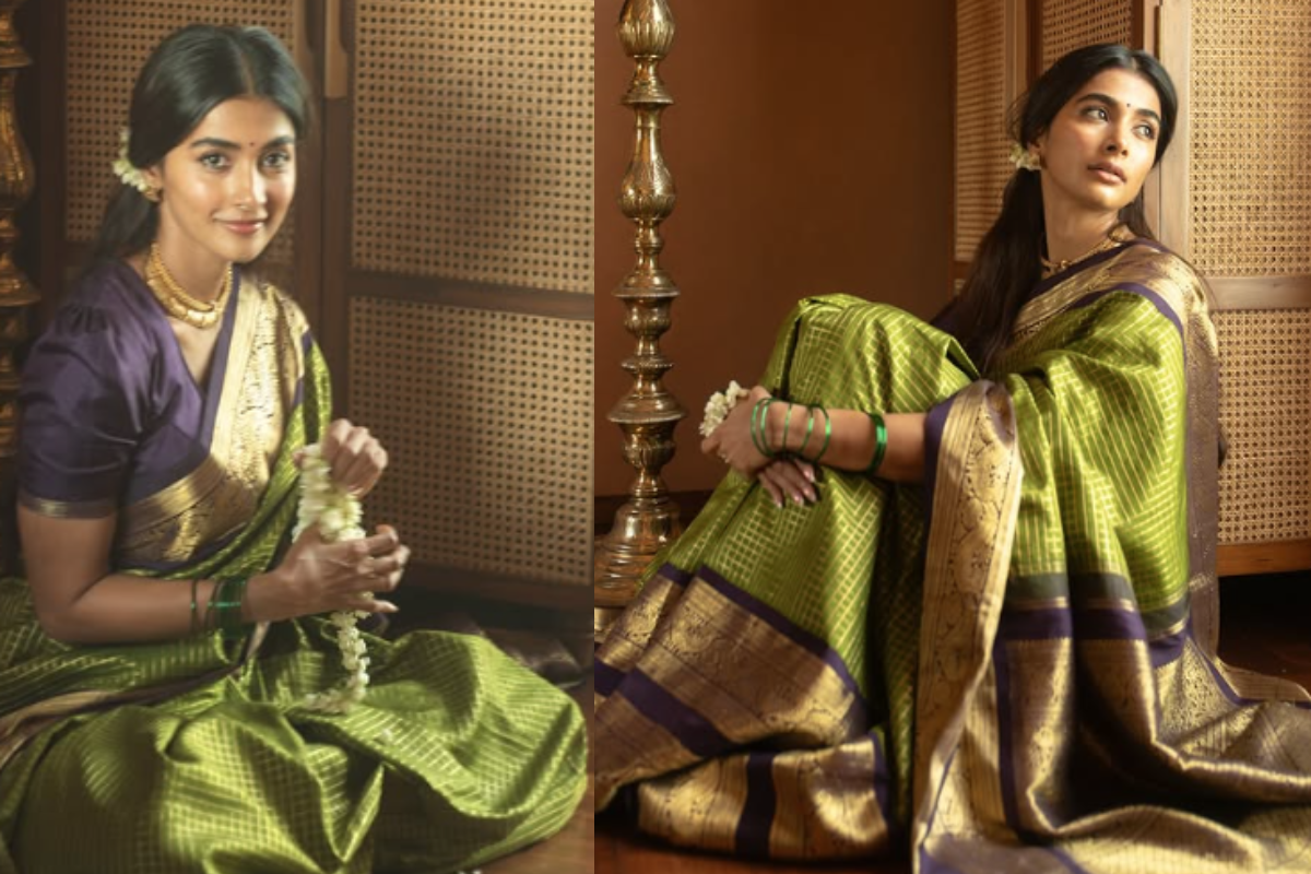 Pooja Hegde: साउथ से लेकर बॉलीवुड तक अपने शानदार अभिनय का जादू बिखेरने वाली अभिनेत्री पूजा हेगड़े इन दिनों अपनी अपकमिंग फिल्म ‘रेट्रो’ को लेकर काफी उत्साहित हैं। फिल्म के प्रमोशन में व्यस्त पूजा लगातार एक से बढ़कर एक पोस्ट शेयर कर रही हैं। हाल ही में उन्होंने कुछ तस्वीरें साझा कीं, जिसमें वह 70 साल पुरानी कांजीवरम साड़ी में बेहद खूबसूरत नजर आ रही हैं।