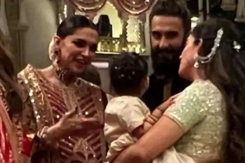अनंत अंबानी और राधिका मर्चेंट की शादी में दीपिका पादुकोण और रणवीर सिंह ने खूब धूम मचाई। दीपिका, जो जल्द ही मां बनने वाली हैं, इस विवाह समारोह में अपने बेबी बंप के साथ बेहद खूबसूरत लग रही थीं। सोशल मीडिया पर वायरल हो रहे एक फोटो में दीपिका पादुकोण, ईशा अंबानी की बेटी के साथ खेलती नजर आ रही हैं। यह फोटो फैंस के दिलों को जीत रही है।