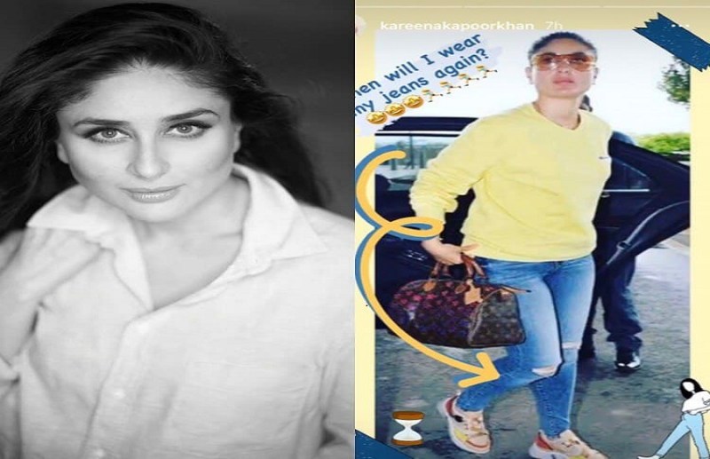 करीना कपूर खान ने जो लेटेस्ट तस्वीर पोस्ट की है। यह उनकी थ्रोबैक तस्वीर हैं। फोटो में वह येलो टी-शर्ट और ब्लू रिप्ड जींस पहने हुए दिखाई दे रही हैं। इसी तस्वीर के साथ करीना लिखती हैं कि "मैं अपनी जींस दोबारा कब पहन पाऊंगी?।" उनकी यह फोटो उनके फैंस को काफी पसंद आ रही है। बता दें इससे पहले भी करीना ने एक ब्लैक एंड वाइट तस्वीर शेयर की थी। जिसमें वह बैठे हुए पोज देती हुई दिखाई दीं। जिसके साथ ही उन्होंने अपने आने वाले बेबी का इंतजार करने की बात कही थी।