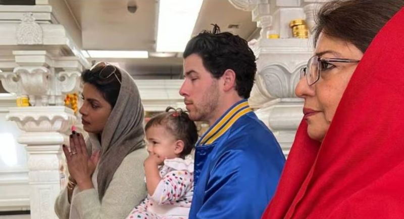 परिवार के साथ मंदिर पहुंची प्रियंका