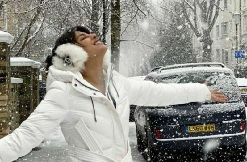 लंदन की सड़क पर हुआ स्नोफॉल तो झूमती नजर आई प्रियंका चोपड़ा.....