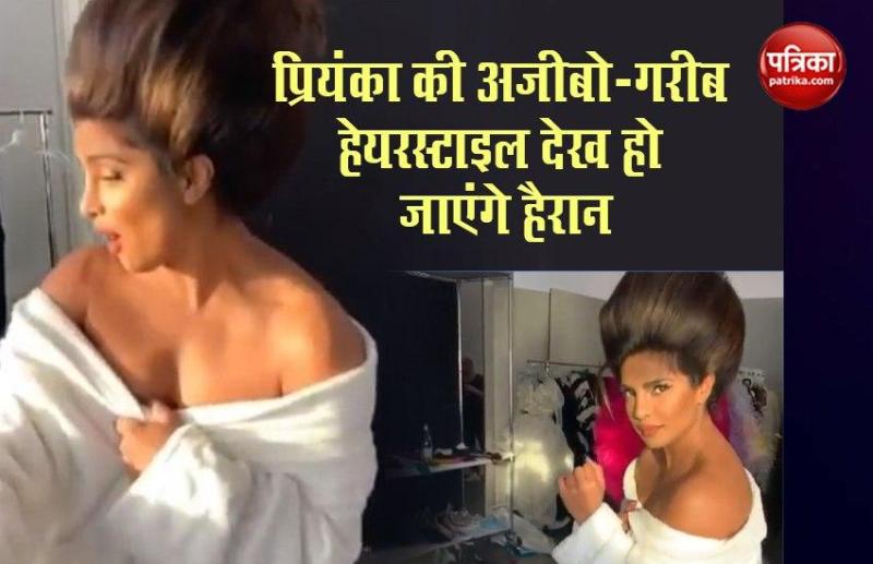 नई दिल्ली । प्रियंका चोपड़ा इन दिनो ल़ॉकडाउन पर अपने घर पर रहकर समय व्यतीत कर रही हैं । इस दौरान वो सोशल मीडिया पर तस्वीरे और वीडियो पोस्ट करते हुए फैस के साथ जुड़ी रहती है इन दिनों उनके द्वारा पोस्ट किया एक वीडियो सोशल मीडिया पर काफी वायरल हो रहा है। जिसमे वो बाथरोब पहने नजर आ रही है इतना ही नही उनका हेरस्टाइल देखकर तो बच्चा तक डर जाएगा,इस अजीबो-गरीब हेयरस्टाइल के साथ वो डांस करते नजर आई। प्रियंका ने वीडियो शेयर करके कैप्शन में लिखा है, "वीकेंड पर डांस।