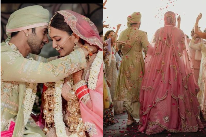 बता दें, एक्ट्रेस कृति खरबंदा ने अपने बॉयफ्रेंड रहे पुलकित सम्राट से शादी की है। दोनों ही शादी के जोड़े में काफी ज्यादा अच्छे लग रहे हैं कृति ने पिंक कलर का लहंगा पहना है और पुलकित ने शेरवानी पिस्ता कलर की हैं। एक फोटो में कपल बेहद रोमांटिक नजर आ रहा है साथ ही एक दूसरी फोटो में पुलकित और कृति एक दूसरे का हाथ थामें नजर आ रहे हैं। तीसरी फोटो में कृति मंगलसूत्र पहने नई दुल्हन बन सुंदर लग रही हैं और एक जो फोटो आई है उसमे दोनों कपल की बैक से फोटो है जिसमें मेहमान नए जोड़े पर फूलों की बरसात कर रहे हैं।