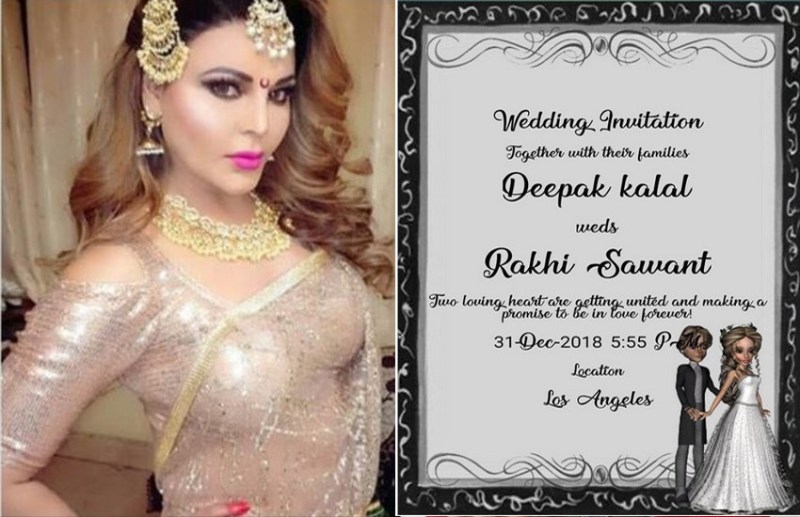 दीपक और राखी के वेडिंग कार्ड में लिखा गया है, ‘वेडिंग इनविटेशन,अपनी फैमिलीज के साथ दीपक कलाल और राखी सावंत की शादी। दो प्यार भरे दिल एक होने जा रहे हैं। जो हमेशा के लिए एक दूसरे के होने जा रहे हैं। 31 दिसंबर को.. शाम 5.55 मिनट पर। लॉस एजलिस में..।’