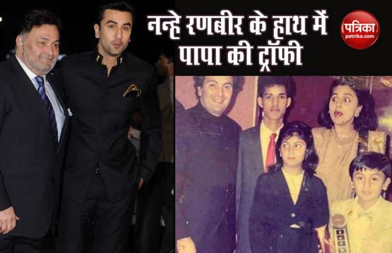 दरअसल, इस तस्वीर में रणबीर कपूर ऋषि कपूर की ट्रॉफी अपने हाथों में लिए नजर आ रहे हैं। इस तस्वीर में रणबीर कपूर के अलावा, ऋषि कपूर, नीतू कपूर (Neetu Kapoor) और रिद्धिमा कपूर (Riddhima Kapoor) भी नजर आ रही हैं। माना जा रहा है कि यह तस्वीर किसी अवॉर्ड फंक्शन की है। तस्वीर में आप देख सकते हैं कि नीतू कपूर के एक्सप्रैशन्स काफी मजेदार हैं। वहीं रणबीर कपूर ट्रॉफी लिए कैमरे को देख रहे हैं।
