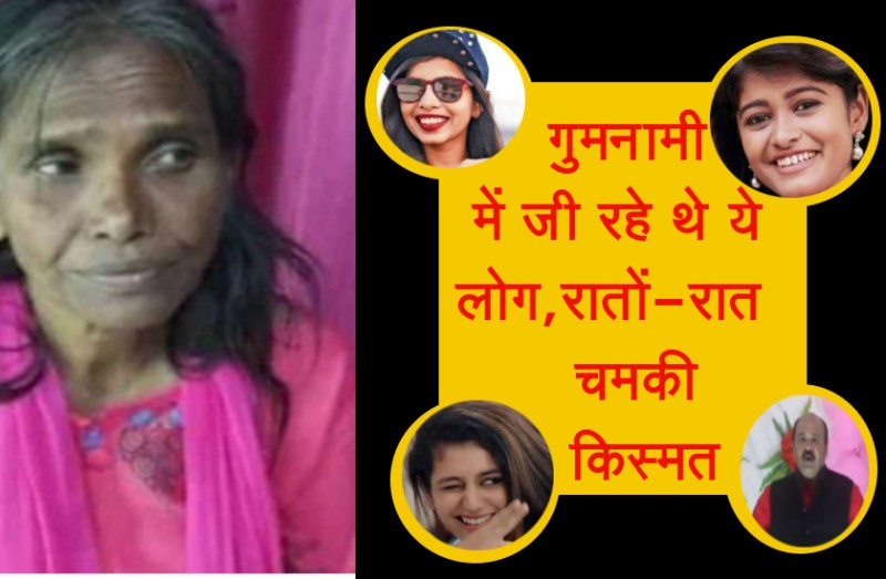 पश्चिम बंगाल के राणाघाट रेलवे स्टेशन पर स्वर कोकिला लता मंगेशकर ( lata mangeshkar ) के मशहूर गानों को गाकर अपनी चार वक्त की रोटी खाया करती थी रानू मंडल ( ranu mandal ) । आज वह पूरे देश में मशहूर हो चुकी हैं। जल्द ही रानू मंडल बॉलीवुड सिंगर और म्यूजिक डायरेक्टर हिमेश रेशमिंया के संग एक बड़े पर्दे पर गाते हुए नजर आएंगी। आपको बता दें कि रानू मंडल के अलावा भी ऐसे कई लोग हैं जिनकी लाइफ रातों रात बदल गई। आज हम आपको ऐसे ही लोगों से आपको मिलवाएंगे। तो आइए देखते हैं ये खास लिस्ट...
