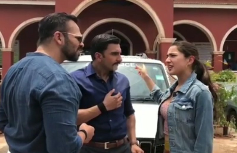 दरअसल वीडियो में रणवीर, सारा मराठी में बात करते नजर आ रहे हैं। रणवीर सिंह फिल्म का एक डायलॉग बोल देते हैं, जिसके बाद रोहित शेट्टी कहते हैं, 'पागल हो गया है जो फिल्म का डायलॉग बोल रहा है।' तभी सारा वहां आ जाती हैं और कहती हैं', ये 'सिंघम-3' का सेट है?' फिर रणवीर और रोहित कहते हैं, 'आइला ये तो अमृता सिंह है।'
